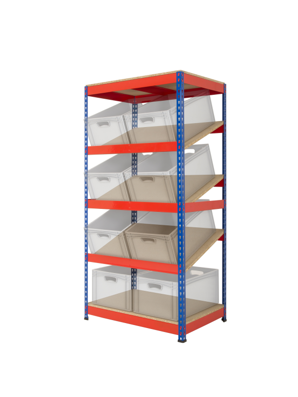 Price includes complete Kanban bay with 3 x sloping shelves, top and bottom shelves. Euro containers shown are not included.