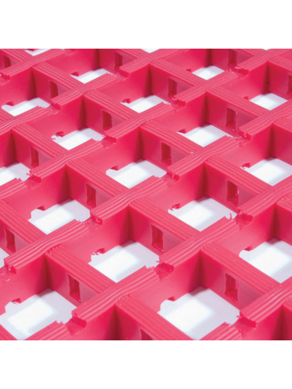 Material: PVC cross-ribbed lattice construction. Vinyl strips interwoven for flexibility and reduced breakage risk. PVC is resistant to alcohols, aliphatic hydrocarbons, oils, weak acids, strong mineral acids, and alkalis. Not resistant to organic solvents, ketones, esters, or aromatic hydrocarbons.