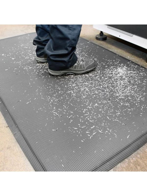 The soft inner layer provides outstanding comfort underfoot, helping to reduce strain and fatigue for workers who stand for prolonged periods. This foam cushioned mat combines ergonomic support with resilience for use in demanding industrial settings.