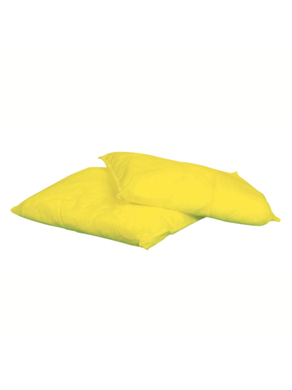 10 chemical absorbent cushions measuring 40cm x 50cm, specifically designed for use on acids, alkalis, strong chemicals, and solvents. These bright yellow cushions clearly indicate hazardous material and are suitable for use across all areas of chemical plants and chemical manufacturing.