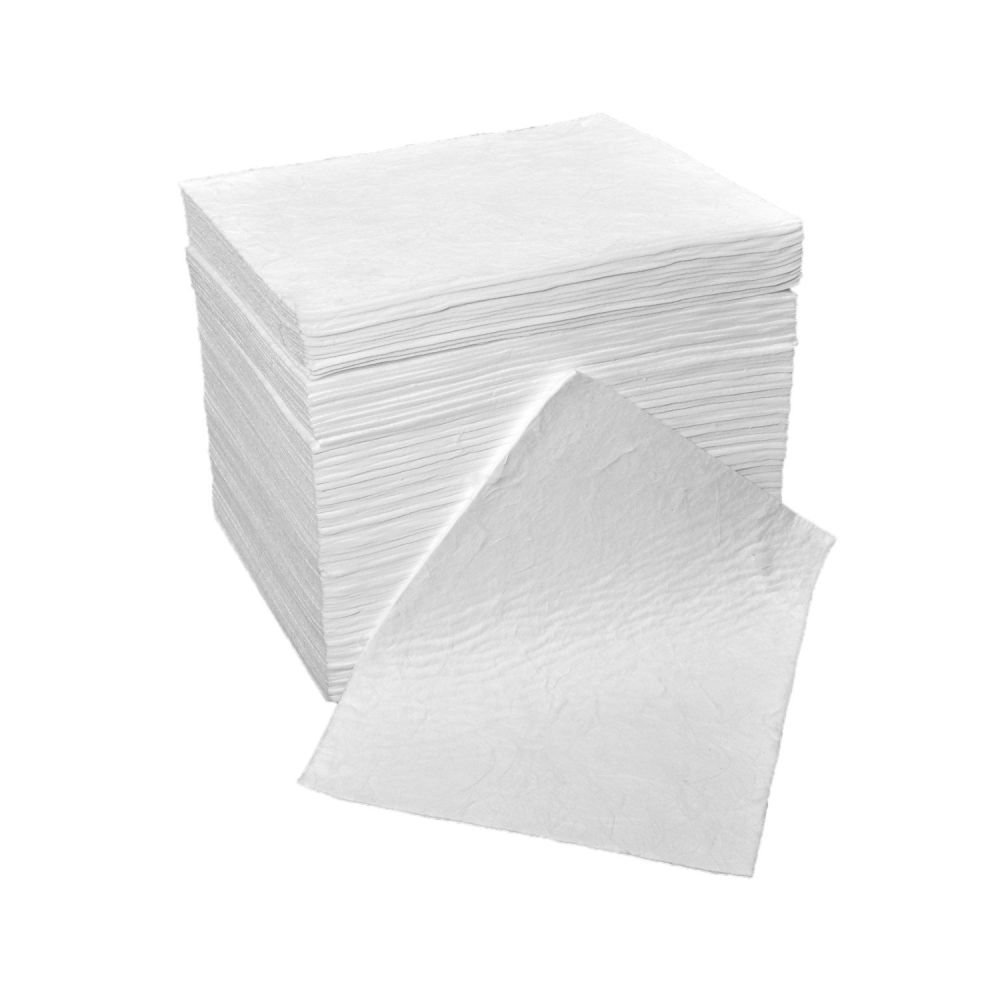 Premium-weight absorbent pads for oil and fuel clean-ups. Plain, non-bonded design with water repellent finish. High absorbency for indoor and outdoor use.