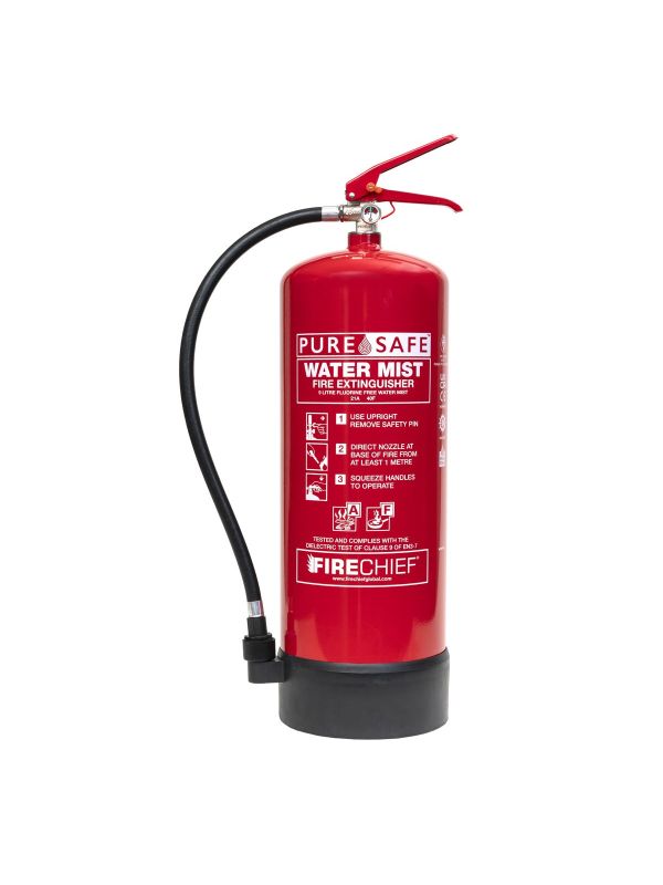 Eco-conscious and compliant, the Firechief PureSafe™ Water Mist Extinguishers are engineered for reliability and environmental safety. Using a specialist misting nozzle, they provide superior coverage while keeping surrounding areas clean and damage-free. Suitable for commercial buildings, healthcare, hospitality, kitchens, and more.