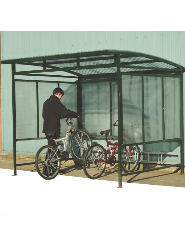 - Fitted with a triple-wall polycarbonate roof and side panels to protect bikes from the elements.