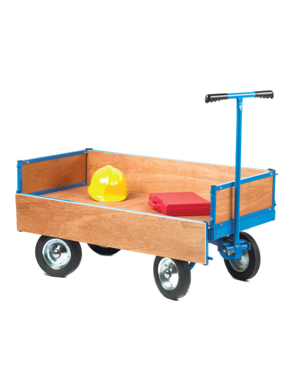 The GPC Flat Deck Trolley with Ackerman dual axle design ensures tight turning circles without compromising load stability. Optional detachable sides available.