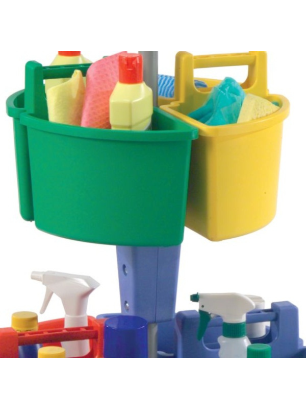 Hotels, for example – bedrooms one colour, bathrooms another colour, WCs yet another... a place for everything and everything in its place. Two large and two small twin-compartment caddies all together but all easily detachable as required. No system could be simpler or more versatile than the Carousel.