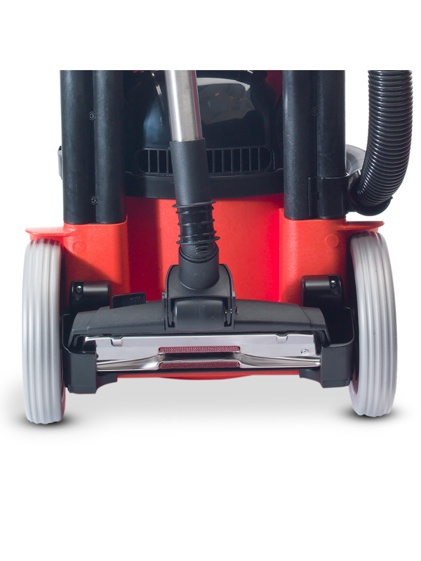 Ensure ease of transit with large rear wheels that provide stability and support on stairways, a telescopic pull handle for convenience, and lift-off storage caddy for additional storage. Convenient on-board wand and floor-tool storage keeps everything close to hand.
