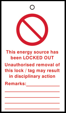 Lockout Tags Pack of 10 (LOK050). These tags are printed on both sides for clear visibility of safety messages during maintenance or servicing. Supplied in packs of 10 complete with tie-wraps, they support effective lockout procedures across a range of industrial settings.