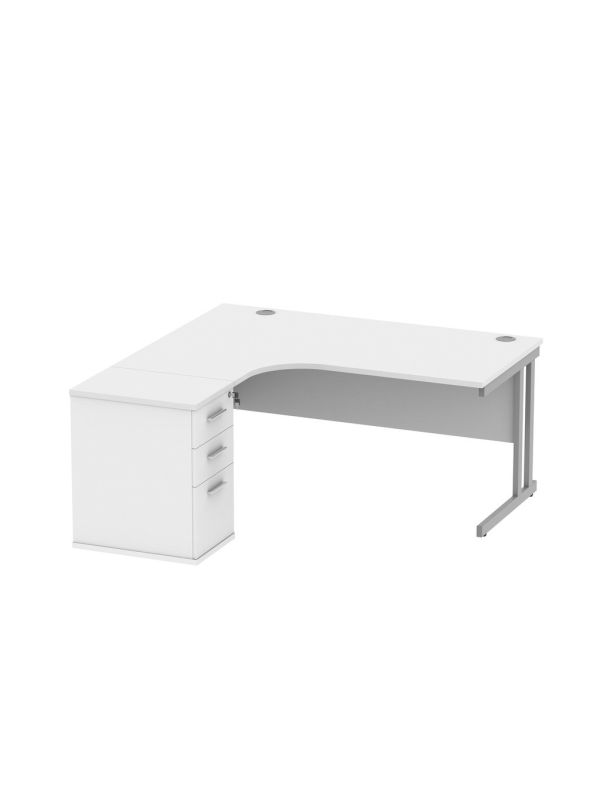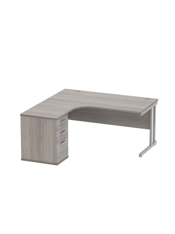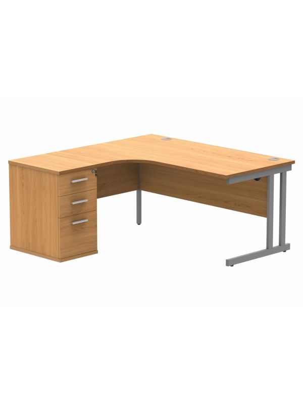 This desk and pedestal combination is designed for flexibility, making it suitable for a wide range of office settings. With its left or right-hand design options, it accommodates different office layouts and user preferences. The addition of the desk high pedestal ensures that your workspace remains clutter-free, providing easy access to essential files and supplies while maintaining a professional appearance.