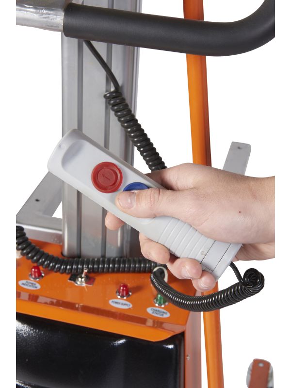 – MLE04Y: Electric, 100kg capacity, 1700mm lift height, 870 x 740 x 2200mm overall size, 24v/20Ah battery with built-in charger