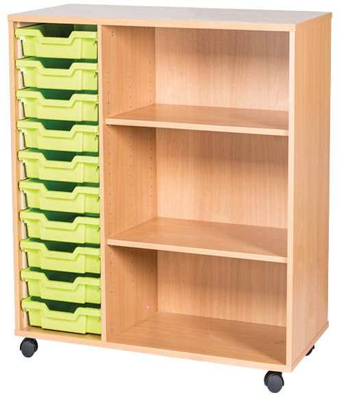 Enhance classroom efficiency with the Willowbrook 10 High 10 Tray Triple Mobile Unit With Shelves. Designed with educators in mind, this mobile storage unit provides a practical and flexible solution for organising learning resources, craft supplies, and textbooks. Built from durable 18mm solid wood MDF, this unit is made to withstand the demands of busy educational environments.