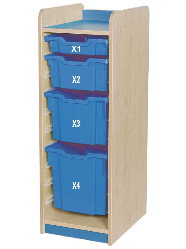 Efficient classroom organisation with Willowbrook KubbyClass Single Bay Combination Tray Storage Units. Durable maple finish, smooth glide trays, and customisable colours.